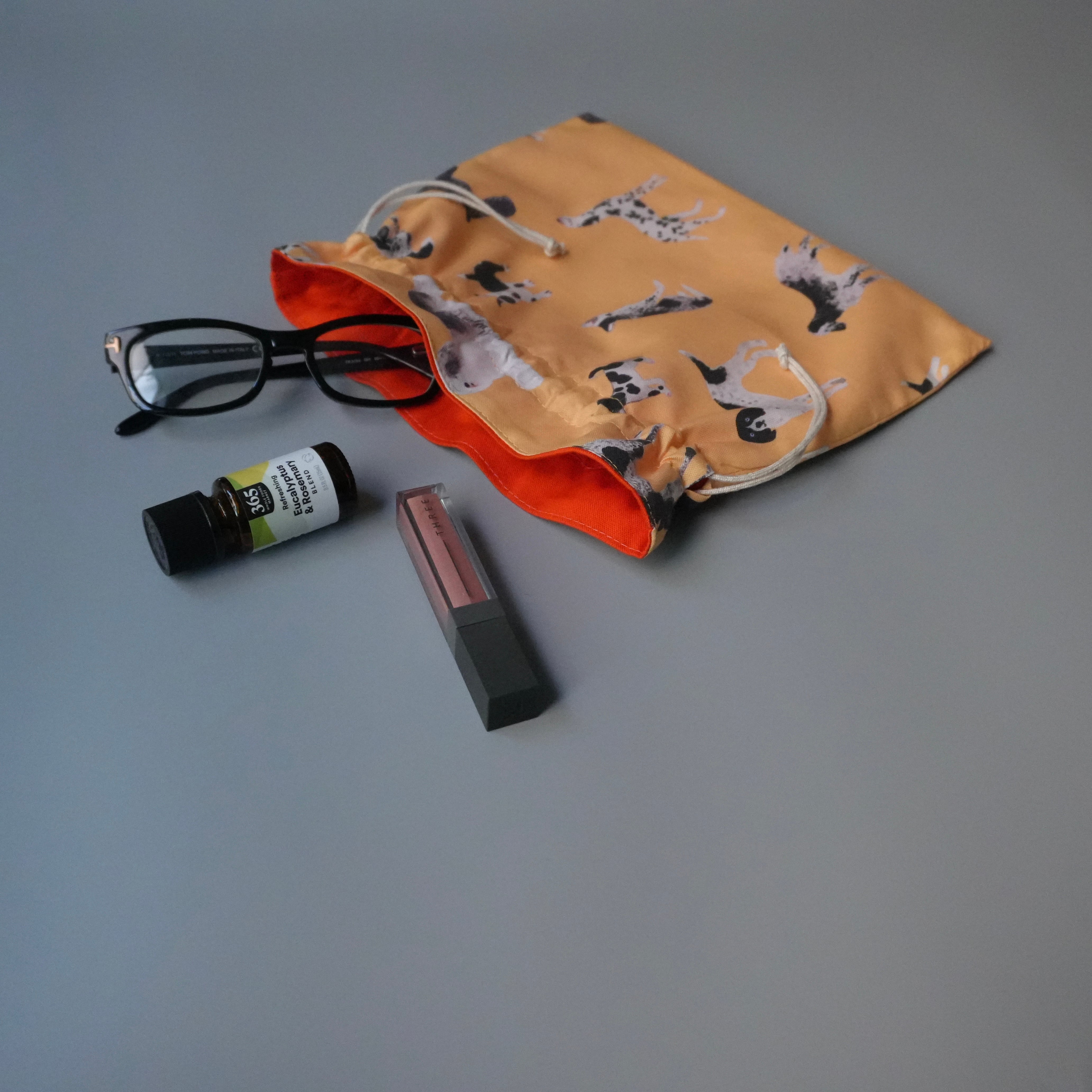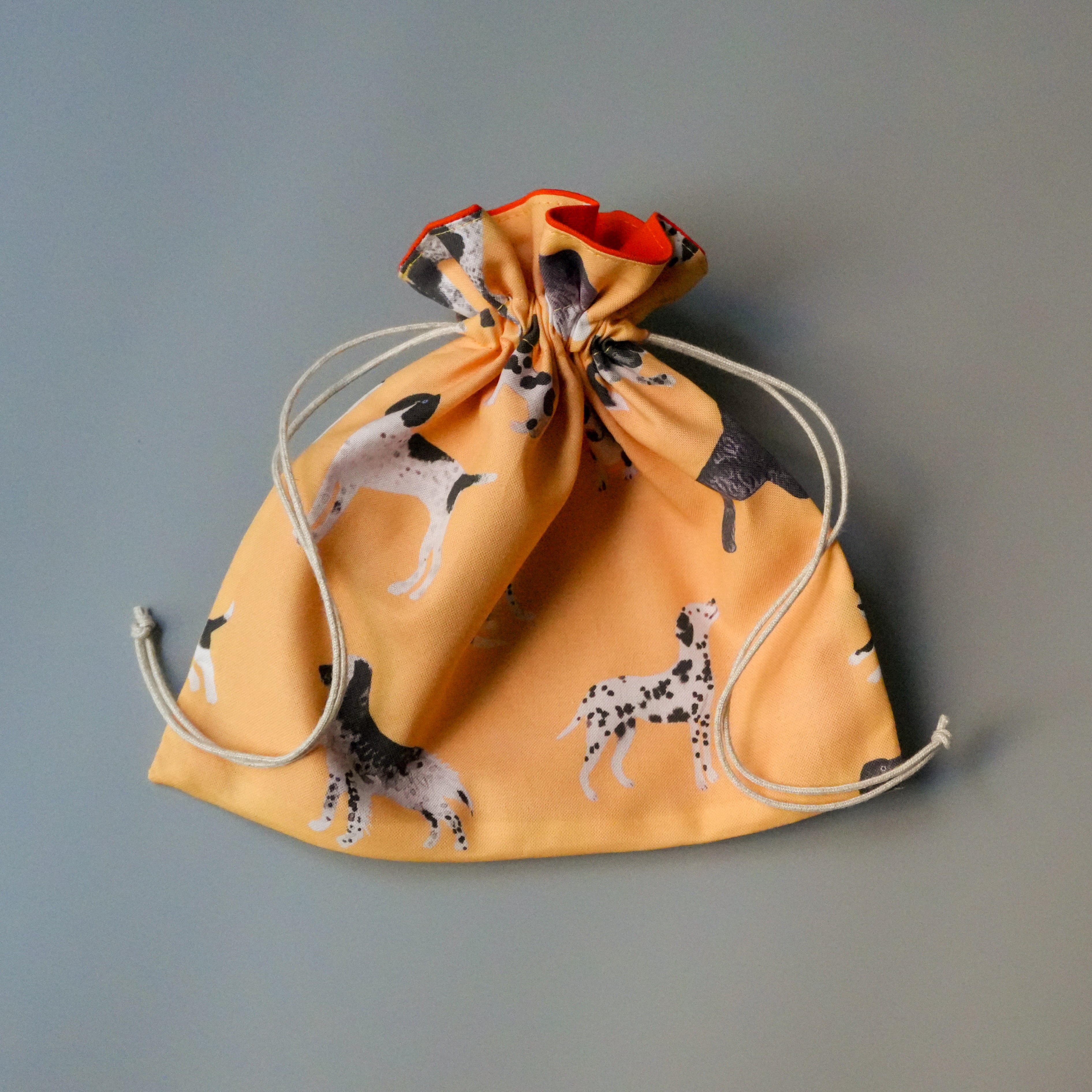 大きめサイズの巾着ポーチ。